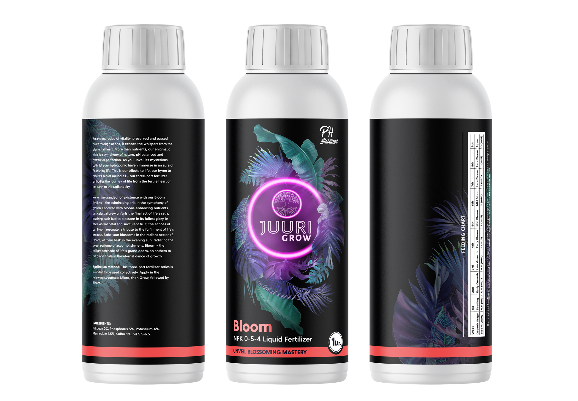 Ein uraltes Rezept der Vitalität, das über Jahrhunderte weitergegeben wurde und das Geflüster der Elemente in sich trägt. Unser rätselhaftes Elixier ist mehr als ein Nährstoff, es ist eine Symphonie der Natur, pH-neutral und auf Perfektion getrimmt. Während Sie seinen geheimnisvollen Pfad enthüllen, tauchen Sie Ihre hydroponische Oase in eine blühende Aura des Lebens ein. Dies ist unser Tribut an das Leben, unsere Hymne an die geheimen Melodien der Natur - unser dreiteiliger Dünger verkörpert die Reise des Lebens vom fruchtbaren Herzen der Erde bis zum strahlenden Himmel.