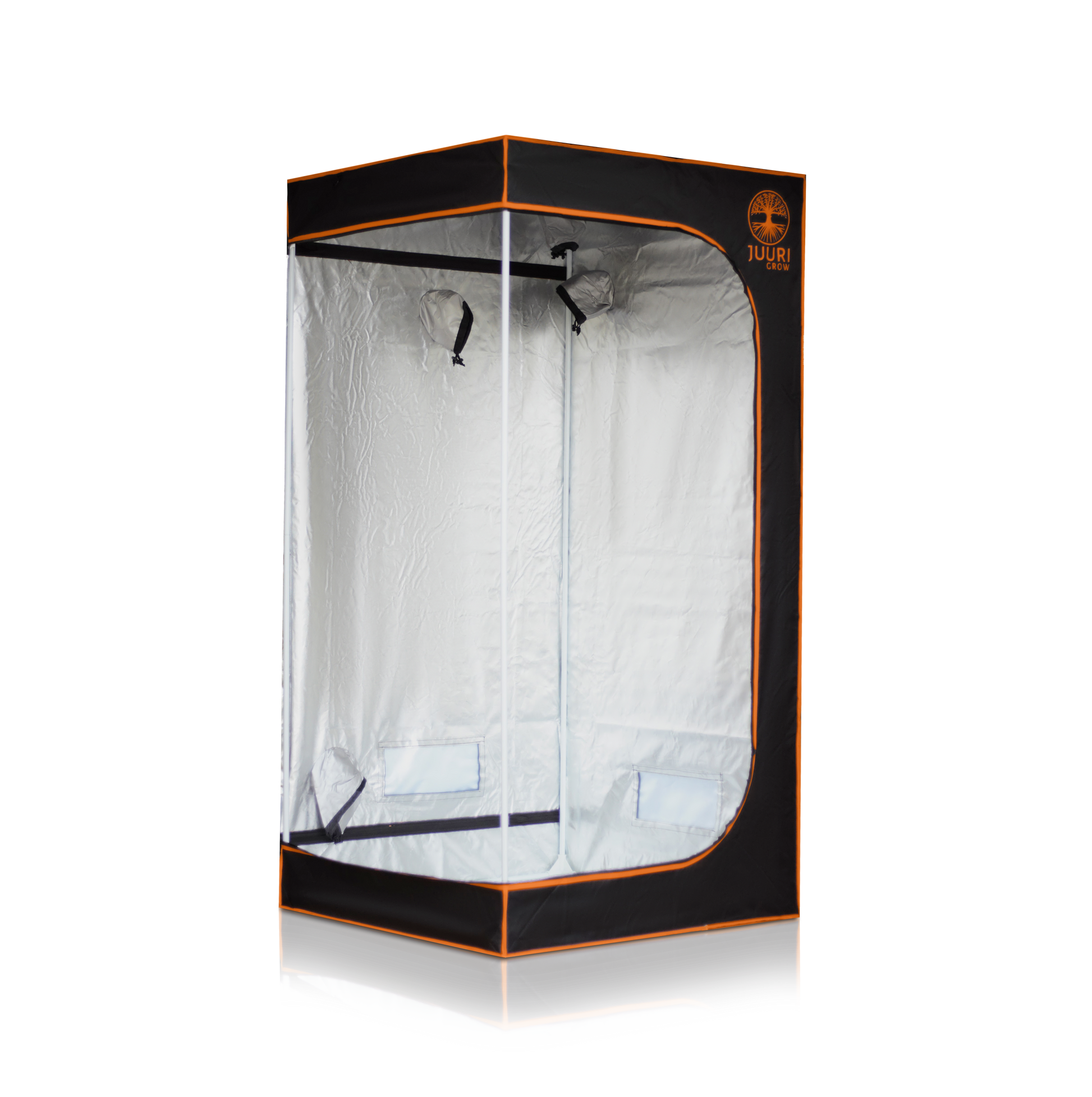 Unsere Boxen vereinen nahtlos Funktion und Haltbarkeit und bieten das Beste aus beiden Welten. Die Außenseite besteht aus 600D Oxford-Gewebe, das für Lampen undurchdringlich ist, während die Innenseite aus hochreflektierendem, silbernem Mylar-Gewebe funkelt. Die reflektierende Mylar-Schicht optimiert die Lichtverteilung und sorgt dafür, dass Ihre Pflanzen das gesamte Spektrum der Strahlungsenergie für optimales Wachstum erhalten. Die D16mm-Rahmenstangen sind stabil und machen die Box ebenso robust wie funktionell. Unsere Boxen verfügen über verstellbare Gitterfenster, die nicht nur für Luftzufuhr sorgen, sondern auch je nach Bedarf Ihrer Pflanzen abgedeckt werden können. Darüber hinaus verfügt die Box über eine Reihe von doppellagigen und verstellbaren Belüftungsöffnungen, die für jeden Anwendungsfall geeignet sind, von passiver Luftzufuhr bis hin zu mechanischer Absaugung. Verstärkte Ecken machen die Struktur außergewöhnlich robust, und eine wasserdichte Basisschicht hält überschüssige Feuchtigkeit fern. Möchten Sie die Tür für einen schnellen Zugriff offen halten? Wir haben Haken angebracht, mit denen dies ein Kinderspiel ist.